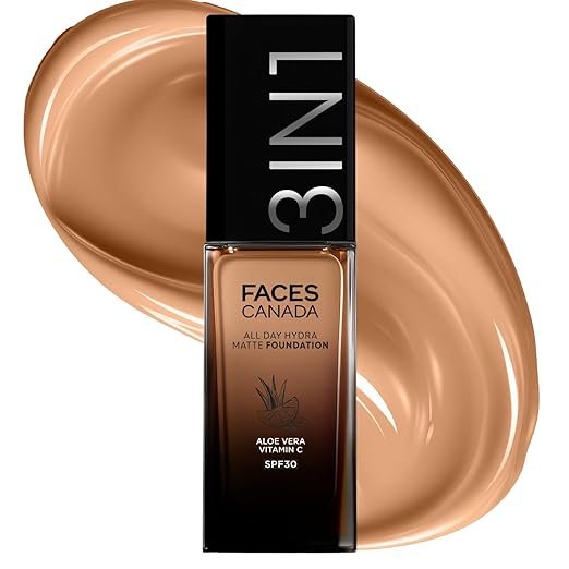 FACES CANADA All Day Hydra Matte Foundation | 3-in-1 Foundation + Moisturizer + SPF 30 Warm Send 042 (30ml)