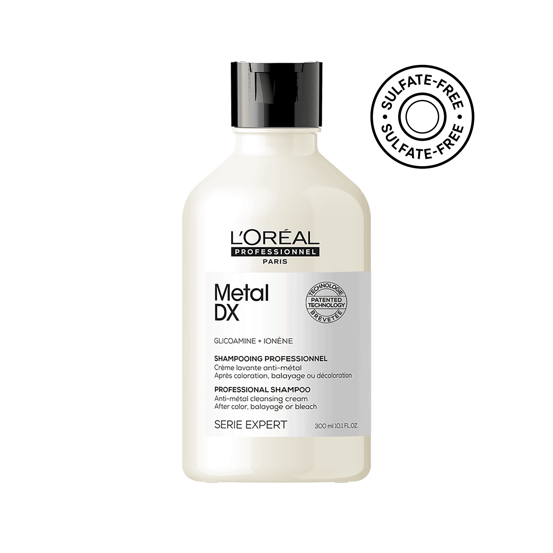 The level of metal in hair varies, depending on hair porosity and on the water quality where we live. This patented technology with no sulfate is enriched with Glicoamine, a molecule small enough to penetrate and neutralize metal inside the fiber. Hair is healthy looking and recovers its shine.