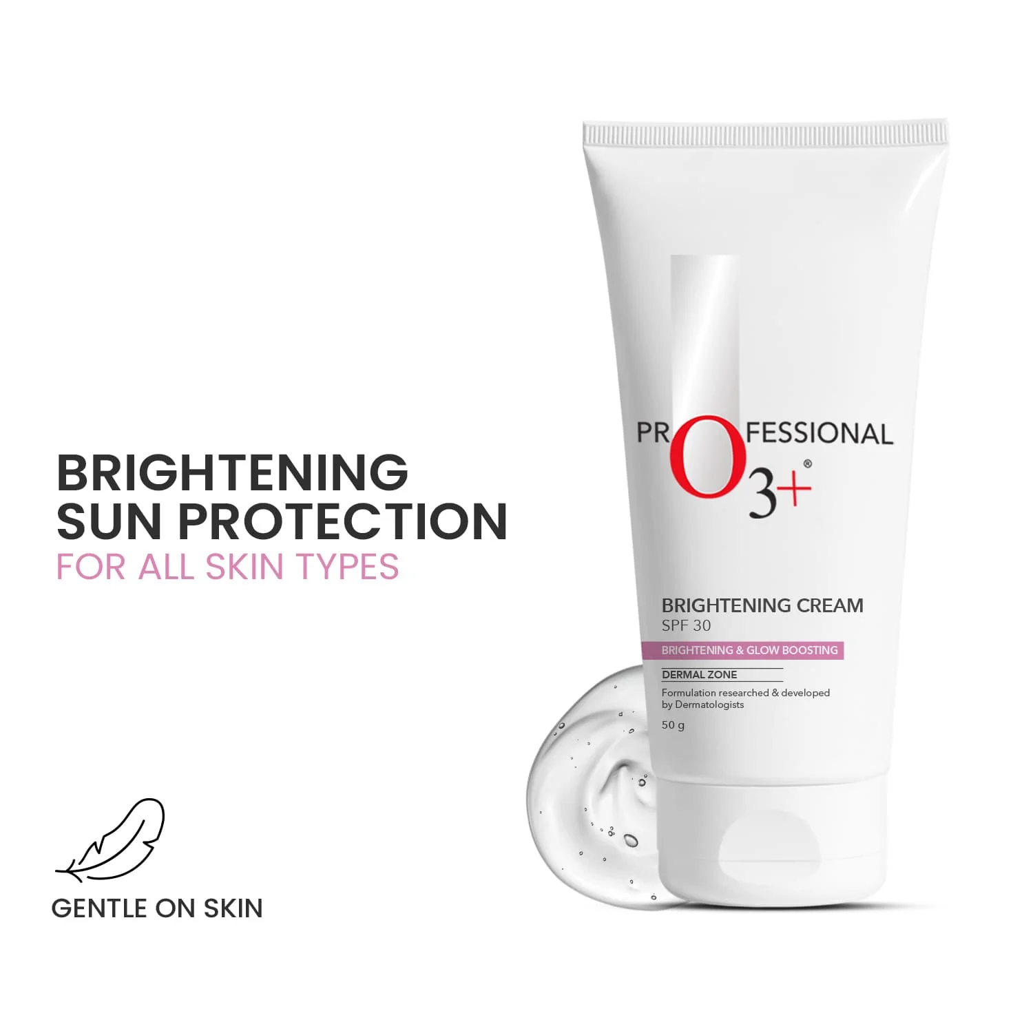 O3+ Whitening SPF 30 for complete protection from UVA & UVB and brightening the skin. This advanced formula is designed to brighten and protect your skin, providing effective whitening benefits and sun protection. Enriched with the power of Pea Extract helps to reduce the appearance of dark spots, hyperpigmentation, and uneven skin tone, while Zinc oxide provides broad-spectrum protection against UVA and UVB rays with a protective barrier on the skin’s surface. With its lightweight and non-greasy formula, this cream absorbs quickly, delivering instant results.